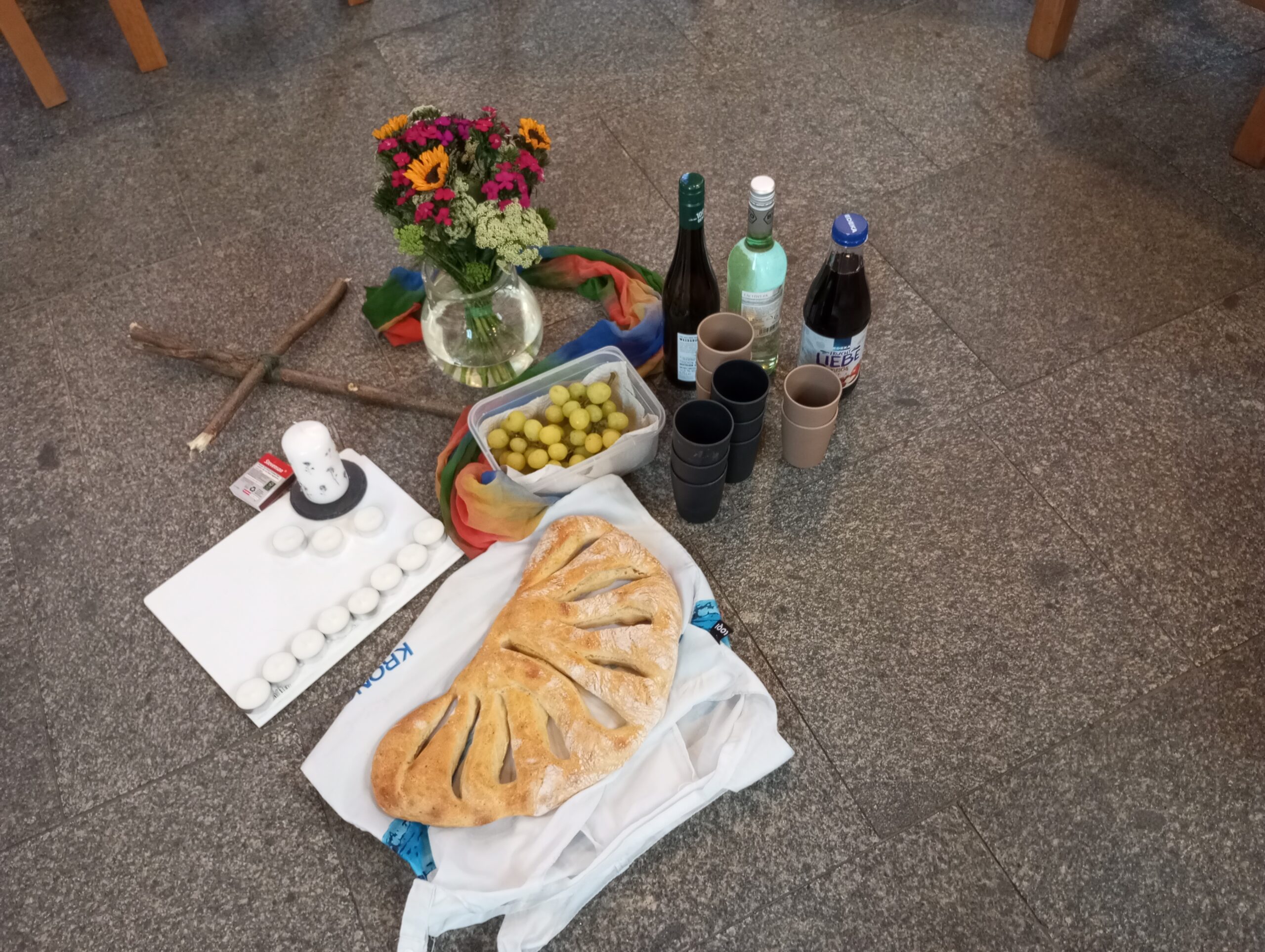 Die Gemeinde heißt alle willkommen: Wer Glauben sucht ebenso wie den, der glaubt. Zur Agape werden Brot und Wein geteilt. Im Anschluss an den Gottesdienst essen wir die mitgebrachten Speisen. Außerdem sammeln wir länger haltbare Nahrungsmittel, wie Kaffee und Nudeln etc. als Spende für die Obdachlosenhilfe (Leipziger Oase).